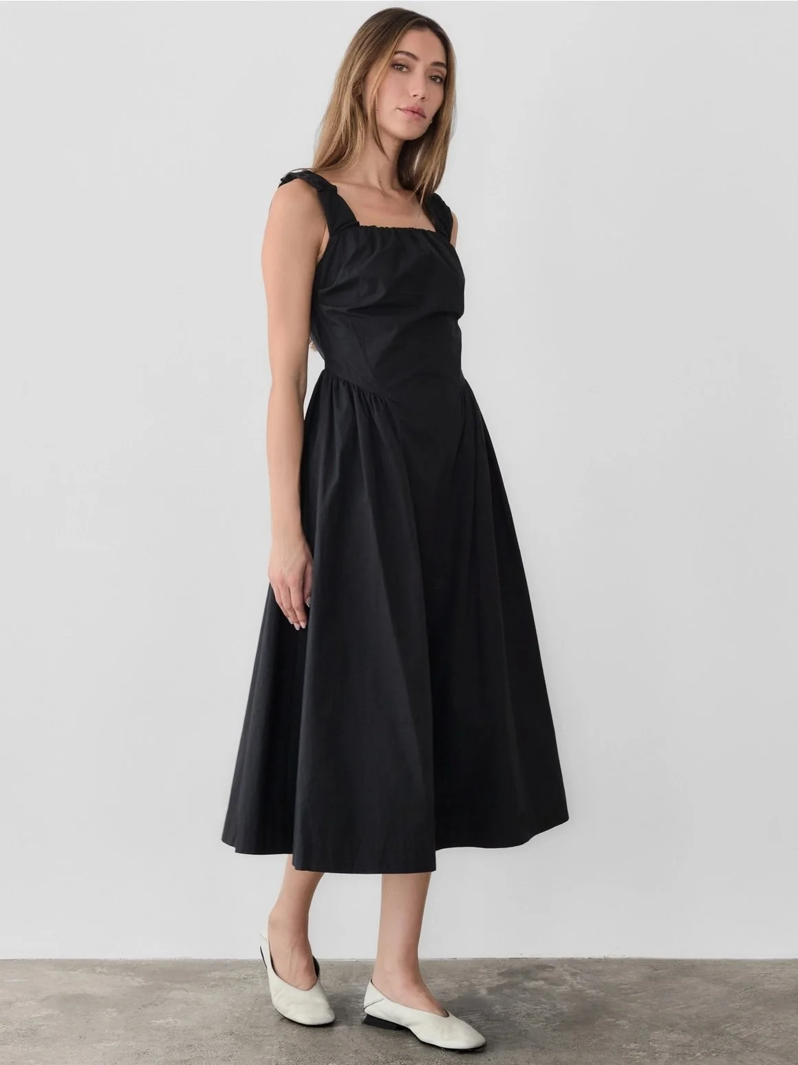 The Alora Dress features a clean square neckline, an elasticated shoulder design and a fit-and-flare silhouette. It’s crafted from brushed cotton poplin for a soft, lightweight feel and styled with a zipper closure at the back for easy wear. The dress offers a flattering midi length, making it a versatile addition to any wardrobe.